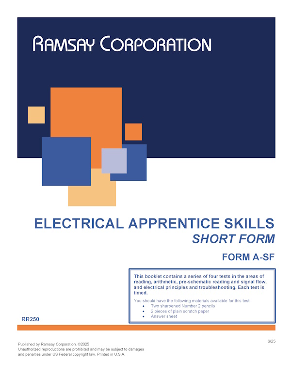 | Electrical Apprentice Skills (Short Form) - Form A-SF (Online) | Online Test | English | OL250 |